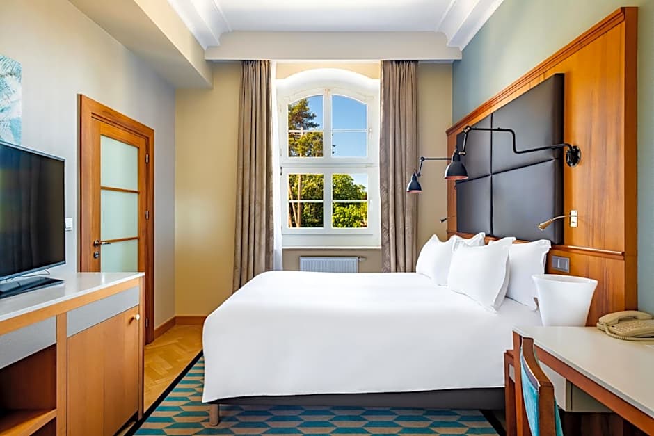 An elegant room with a classic interior design. This room does not feature a balcony.